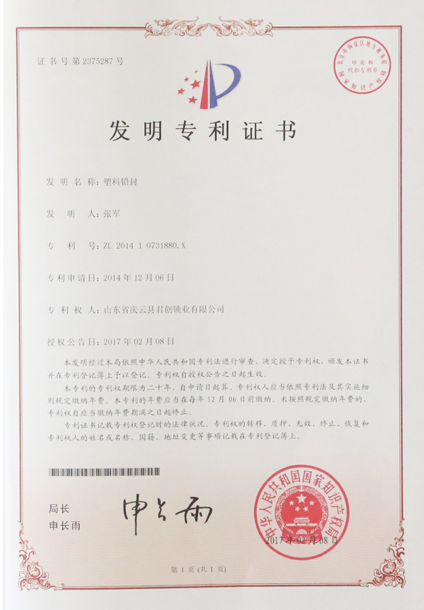塑料铅封-发明专利